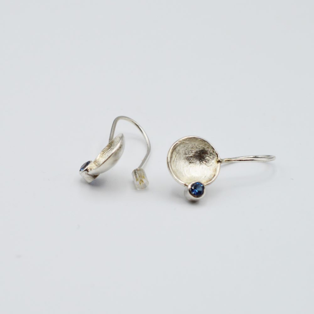Afmetingen: diameter oorbel ca 10,5 mm, diameter aquamarijn ca 3 mm, totale lengte oorbel ca 25 mm