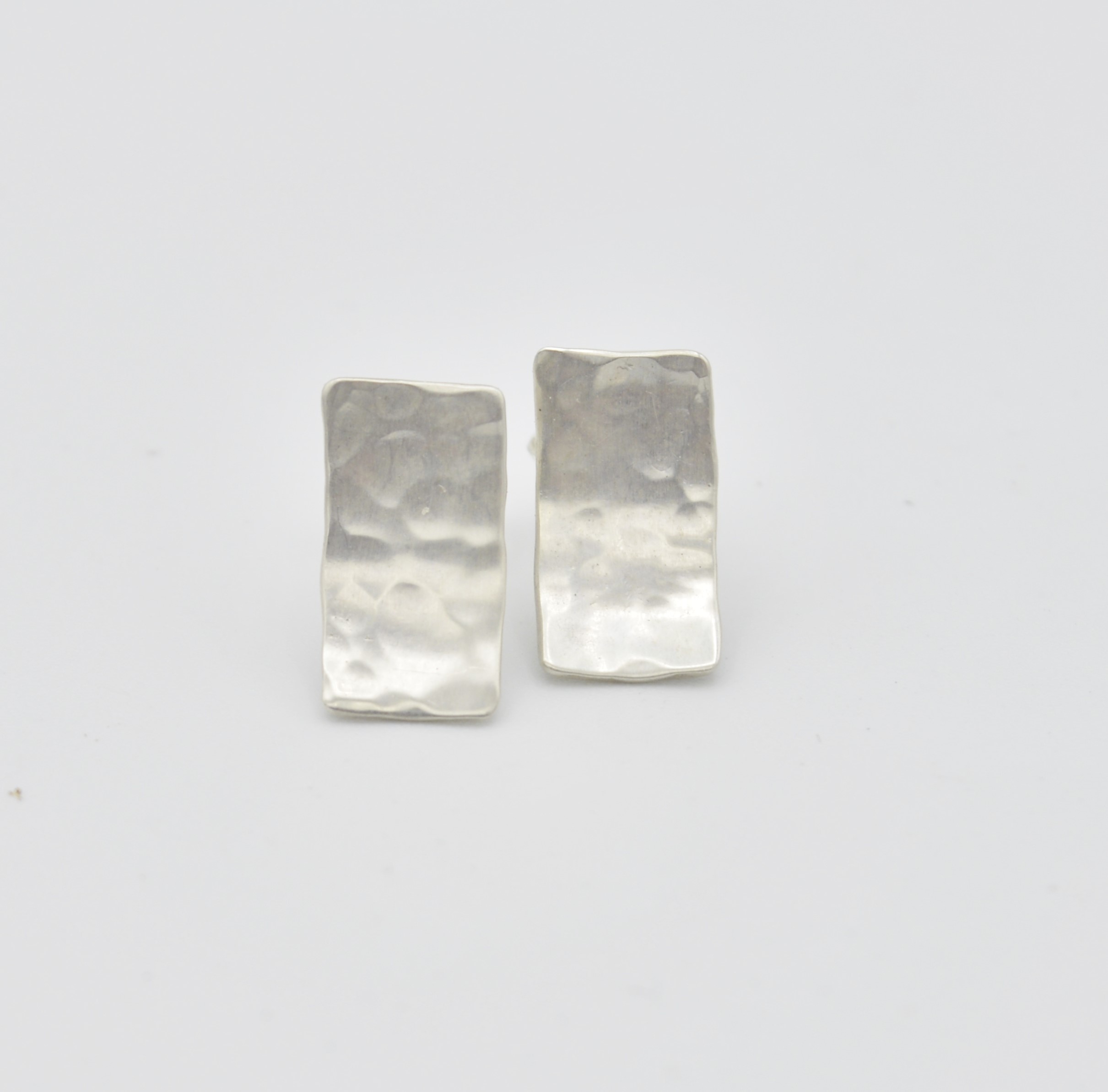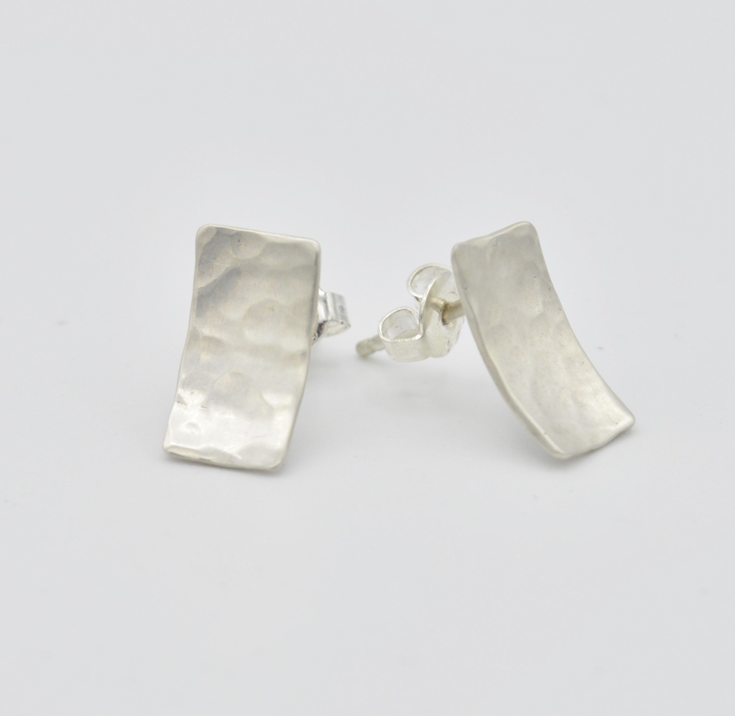 Handgemaakte zilveren oorbellen, met de naam welkom. De oorbellen zijn langwerpig en iets hol geslagen. De oorbellen zijn voorzien van hamereffect en mat afgewerkt. Ze zijn voorzien van stekertjes.